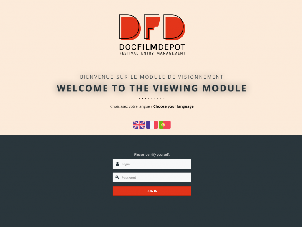 L’identifiant (votre adresse email) et le mot de passe vous ont été communiqué par email. Si vous ne les avez pas reçu, demandez-les à la personne en charge de Docfilmdepot pour le festival.