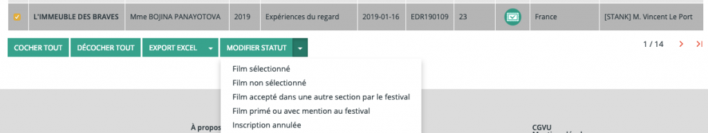 ATTENTION : Dès que vous modifiez le statut d’un film, l’ayant droit est automatiquement informé·e par email que le statut de son film a changé ! Un pop-up apparaîtra pour que vous confirmiez votre choix.